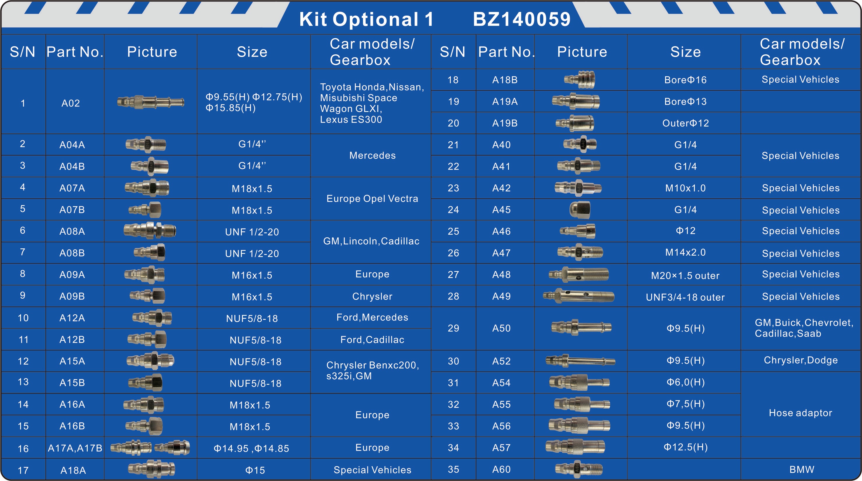 Optional Adaptor Kit for use with ATF Machine. Contents: PART NO SIZE CAR MODELS / GEARBOX  A02 Ø9.55(H) Ø12.75(H) Ø15.85(H)... Read more